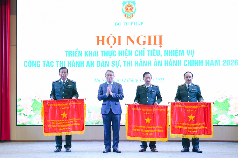 Bộ trưởng Bộ Tư pháp Nguyễn Hải Ninh đã tặng Cờ thi đua của Chính phủ cho 3 tập thể gồm: THADS tỉnh Nghệ An, THADS tỉnh Đồng Tháp, THADS tỉnh An Giang.