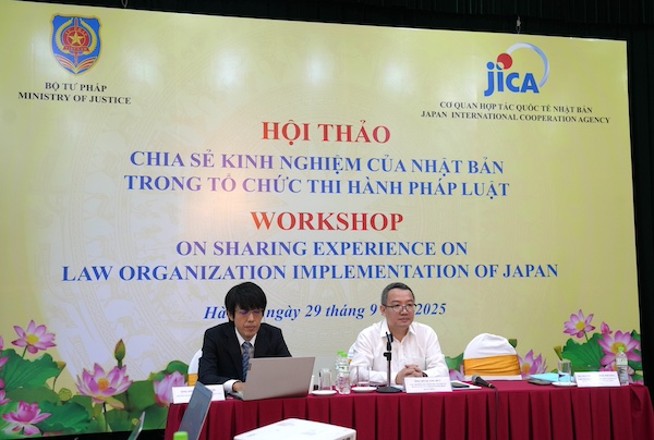 Ngày 29/9, Bộ Tư pháp và Cơ quan Hợp tác quốc tế Nhật Bản (JICA) phối hợp tổ chức Hội thảo “Chia sẻ kinh nghiệm của Nhật Bản trong tổ chức thi hành pháp luật”.
