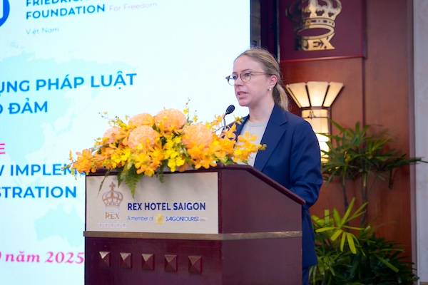 Đại diện Viện FNF Việt Nam, bà Vanessa Steinmetz cho rằng, việc “Đối thoại pháp lý” là một nền tảng hợp tác hiệu quả giữa Bộ Tư pháp Việt Nam và Bộ Tư pháp CHLB Đức nhằm thúc đẩy trao đổi kiến thức và kinh nghiệm pháp lý lẫn nhau. Hội thảo sẽ mang đến những kiến thức thực tiễn và những khuyến nghị quý báu, góp phần xây dựng một hệ thống pháp luật hiện đại, minh bạch và hiệu quả hơn.