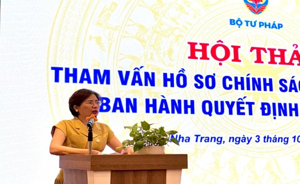 Ngày 03/10/2025, tại Khánh Hòa, Vụ Pháp luật hình sự - hành chính (Bộ Tư pháp) tổ chức Hội thảo Tham vấn hồ sơ chính sách Luật Thủ tục ban hành quyết định hành chính. Hội thảo có sự tham dự của các chuyên gia, đại biểu đến từ Ủy ban Pháp luật và Tư pháp của Quốc hội, Bộ Nông nghiệp và Môi trường và các đại biểu đến từ các sở, ban, ngành, UBND các xã, phường trên địa bàn tỉnh Khánh Hòa. Đồng chí Nguyễn Thị Hạnh, Vụ trưởng Vụ Pháp luật hình sự - hành chính, Bộ Tư pháp chủ trì Hội thảo.