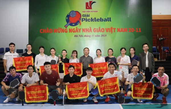 Tối 09/11/2025, Giải Pickleball Học viện Tư pháp 2025 - một trong những hoạt động thể thao văn nghệ chào mừng Ngày Nhà giáo Việt Nam 20/11 đã kết thúc thành công tốt đẹp.
