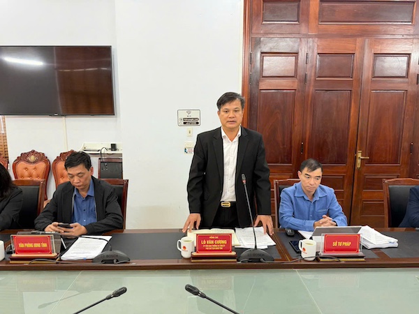 Tiếp và làm việc với Đoàn kiểm tra liên ngành có đồng chí Lò Văn Cương, Ủy viên Ban Thường vụ Tỉnh ủy, Phó Chủ tịch UBND tỉnh Điện Biên; đồng chí Trần Thanh Hưng, Giám đốc Sở Tư pháp tỉnh Điện Biên cùng đại diện Ban Dân tộc, Ban Pháp chế Hội đồng nhân dân () tỉnh; đại diện Văn phòng UBND tỉnh và các sở, ngành gồm: Sở Giáo dục và Đào tạo; Sở Xây dựng; Sở Khoa học và Công nghệ; Sở Tài chính; Sở Văn hóa, Thể thao và Du lịch; Sở Nông nghiệp và Môi trường; Sở Nội vụ; Sở Ngoại vụ; Ban Dân tộc; Trung tâm Phục vụ hành chính công tỉnh Điện Biên.