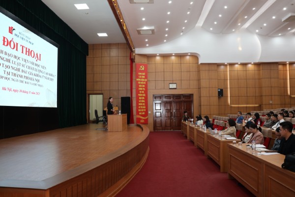 Sáng 30/11/2025, lãnh đạo Học viện Tư pháp đối thoại với học viên Lớp đào tạo nghề luật sư chất lượng cao khóa 7 và Lớp đào tạo nghề đấu giá khóa 17 tại Hà Nội. NGƯT. PGS. TS. Nguyễn Minh Hằng, Phó Bí thư Đảng ủy, Phó Giám đốc Học viện Tư pháp chủ trì buổi đối thoại.