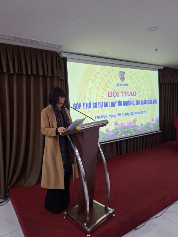 Sáng 10/02/2026, tại Hà Nội, Bộ Tư pháp đã tổ chức Hội thảo góp ý hồ sơ dự án Luật Tín ngưỡng, tôn giáo (sửa đổi) nhằm nâng cao chất lượng góp ý, chuẩn bị cho công tác thẩm định dự án Luật.