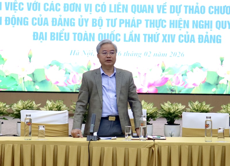 Sáng 26/2, Phó Bí thư chuyên trách Đảng ủy Bộ Tư pháp Nguyễn Quang Thái đã chủ trì buổi làm việc với các đơn vị có liên quan về dự thảo Chương trình hành động thực hiện Nghị quyết Đại hội đại biểu toàn quốc lần thứ XIV của Đảng.