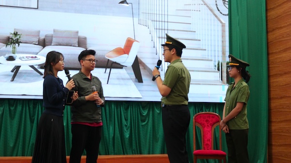 Điểm nhấn của chương trình là phần diễn tình huống minh họa do nhóm sinh viên Liên Chi đoàn Khoa Pháp luật hình sự, Trường Đại học Luật Hà Nội thực hiện, tái hiện một thủ đoạn lừa đảo phổ biến trên mạng xã hội hiện nay: đối tượng tạo dựng hình ảnh giả, làm quen, chiếm được lòng tin, sau đó dụ dỗ nạn nhân gặp mặt và từng bước đẩy nạn nhân vào nguy cơ bị lừa đảo, mua bán người, ép buộc lao động xuyên biên giới. Với cách thể hiện sinh động, gần gũi, tình huống đã giúp học viên, sinh viên dễ hình dung hơn về các phương thức, thủ đoạn phạm tội trên không gian mạng, đồng thời nâng cao nhận thức, ý thức cảnh giác trước những lời mời kết bạn, hứa hẹn việc làm, tình cảm hoặc lợi ích vật chất thiếu căn cứ.
