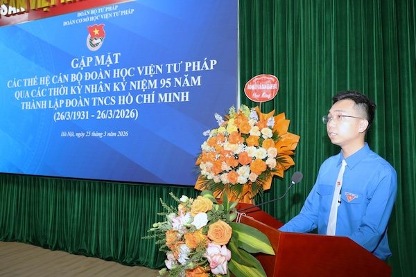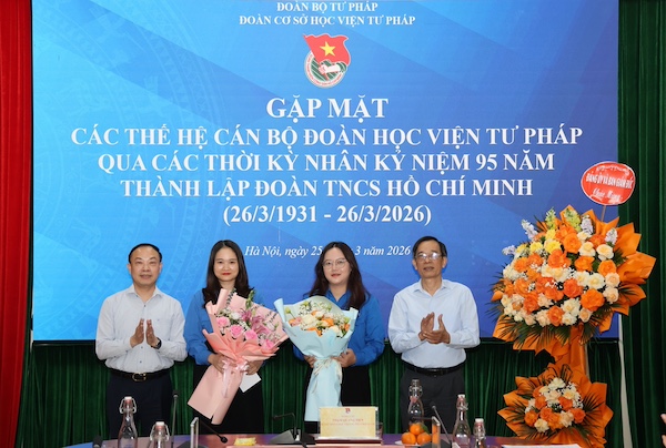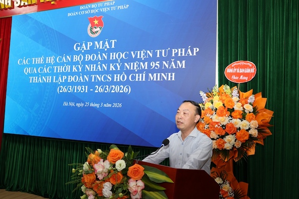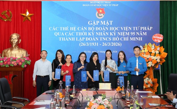 Sáng 25/3/2026, trong không khí tuổi trẻ cả nước hướng tới kỷ niệm 95 năm Ngày thành lập Đoàn Thanh niên Cộng sản Hồ Chí Minh (26/3/1931-26/3/2026), Đoàn Thanh niên Học viện Tư pháp đã tổ chức Chương trình “Gặp mặt các thế hệ cán bộ Đoàn Học viện Tư pháp qua các thời kỳ”.