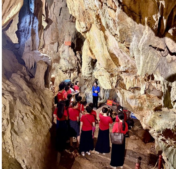 Chi bộ và Chi đoàn Cục PLQT&GQTCĐTQT khám phá vẻ đẹp kì vĩ của Động Ngườm Ngao.
