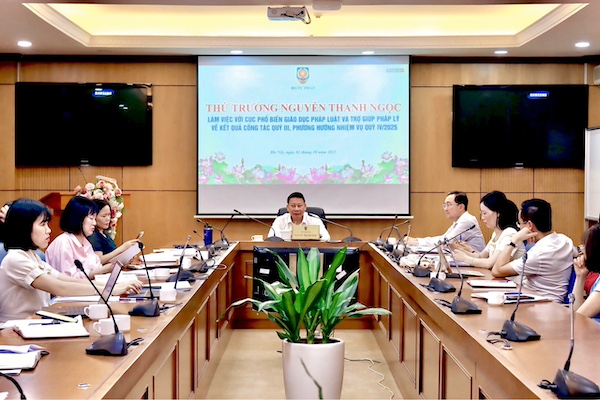 Chiều 2/10, Thứ trưởng Bộ Tư pháp Nguyễn Thanh Ngọc làm việc với Cục Phổ biến, giáo dục pháp luật và Trợ giúp pháp lý (PBGDPL&TGPL) về kết quả công tác quý III, phương hướng nhiệm vụ quý IV/2025.