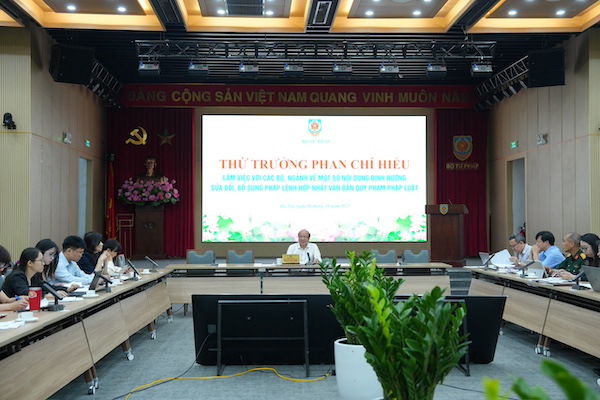 Ngày 8/10, Thứ trưởng Phan Chí Hiếu chủ trì buổi làm việc với các Bộ, ngành về một số nội dung định hướng sửa đổi, bổ sung Pháp lệnh Hợp nhất văn bản quy phạm pháp luật.