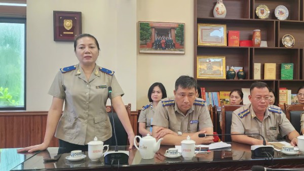 Bà Trần Thị Phương Hoa, Phó Cục trưởng Cục Quản lý THADS đề nghị Thi hành án dân sự tỉnh Thái Nguyên tập trung khắc phục hậu quả cơn bão số 11, vượt qua khó khăn, nhanh chóng ổn định hoạt động của đơn vị.