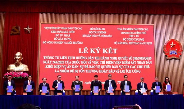 Chiều 3/11, VKSND tối cao tổ chức Lễ ký kết Thông tư liên tịch hướng dẫn thi hành Nghị quyết số 205/2025/QH15 ngày 24/6/2025 của Quốc hội về việc thí điểm VKSND khởi kiện vụ án dân sự để bảo vệ quyền dân sự của các chủ thể là nhóm dễ bị tổn thương hoặc bảo vệ lợi ích công (Nghị quyết số 205) và Quy chế phối hợp thực hiện thí điểm “VKSND khởi kiện vụ án dân sự để bảo vệ quyền dân sự của các chủ thể là nhóm dễ bị tổn thương hoặc bảo vệ lợi ích công”.
