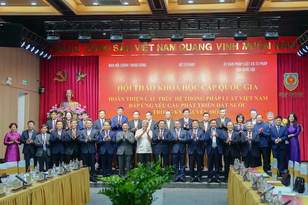 Đồng chí Phan Đình Trạc, Ủy viên Bộ Chính trị, Bí thư Trung ương Đảng, Trưởng Ban Nội chính Trung ương chụp ảnh lưu niệm cùng các đại biểu dự Hội thảo khoa học cấp quốc gia Hoàn thiện cấu trúc hệ thống pháp luật Việt Nam đáp ứng yêu cầu phát triển đất nước trong kỷ nguyên mới.