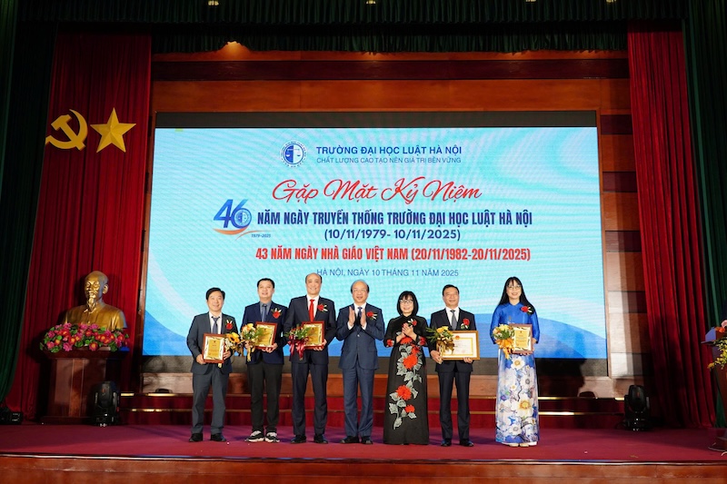 Ngày 10/11, Trường Đại học Luật Hà Nội đã tổ chức buổi Lễ Gặp mặt kỷ niệm 46 năm Ngày truyền thống Trường Đại học Luật Hà Nội (10/11/1979 - 10/11/2025) và 43 năm Ngày Nhà giáo Việt Nam (20/11/1982 - 20/11/2025).