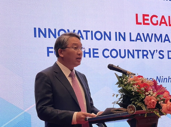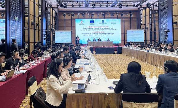 Phát biểu khai mạc Diễn đàn, Bộ trưởng Nguyễn Hải Ninh cho biết, thời gian qua, Đảng và Nhà nước đã có nhiều chủ trương, chính sách đổi mới, nâng cao hiệu quả công tác xây dựng và thi hành pháp luật, đạt nhiều kết quả quan trọng. Tư duy, nhận thức lý luận về Nhà nước pháp quyền xã hội chủ nghĩa Việt Nam không ngừng được hoàn thiện. Việt Nam đã hình thành hệ thống pháp luật tương đối đồng bộ, công khai, minh bạch, dễ tiếp cận cơ bản điều chỉnh tất cả các lĩnh vực đời sống xã hội, tạo nền tảng pháp lý để phát triển kinh tế - xã hội, bảo đảm quốc phòng an ninh và hội nhập quốc tế. Mặc dù vậy, chúng ta cũng phải thẳng thắn nhìn nhận rằng, công tác xây dựng và thi hành pháp luật thời gian qua vẫn còn một số hạn chế, bất cập. Trong bối cảnh đất nước đang bước vào kỷ nguyên phát triển mới với khát vọng vươn xa, hội nhập sâu rộng, đòi hỏi khách quan là tiếp tục đổi mới thể chế, pháp luật mạnh mẽ hơn.
