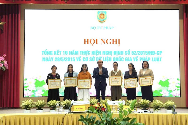 Nhân dịp này, Thứ trưởng Phan Chí Hiếu đã trao tặng Bằng khen của Bộ trưởng Bộ Tư pháp cho các tập thể, cá nhân có thành tích xuất sắc trong triển khai thi hành Nghị định số 52, trong đó có phóng viên Báo Pháp luật Việt Nam Vũ Phương Mai.