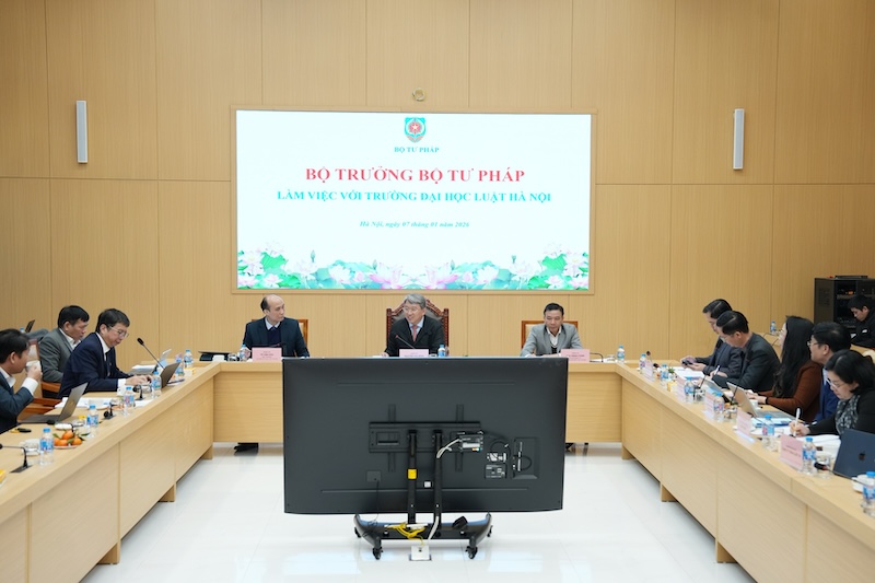 Ngày 7/1, tại cơ sở 2 Trường Đại học Luật Hà Nội, phường Đồng Nguyên, tỉnh Bắc Ninh, Bộ trưởng Bộ Tư pháp Nguyễn Hải Ninh đã chủ trì buổi làm việc với Trường Đại học Luật Hà Nội về Đề án nghiên cứu xây dựng Bộ chỉ số đánh giá mức độ hoàn thiện thể chế pháp luật kinh doanh cấp tỉnh (PBLI).