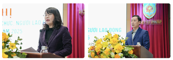Hội nghị đã nghe Báo cáo kết quả công tác tư pháp năm 2025 và nhiệm vụ, giải pháp chủ yếu công tác năm 2026; báo cáo tình hình sử dụng ngân sách nhà nước trong các đơn vị thuộc Bộ Tư pháp năm 2025; Báo cáo kết quả thanh tra, kiểm tra, giải quyết khiếu nại, tố cáo đối với CBCCVC các đơn vị thuộc Bộ Tư pháp năm 2025; Báo cáo về kết quả thực hiện công tác tổ chức, cán bộ của Bộ Tư pháp năm 2025; Báo cáo kết quả hoạt động của Ban Thanh tra nhân dân cơ quan Bộ Tư pháp năm 2025 và đề xuất hoạt động thanh tra nhân dân năm 2026. Đại diện lãnh đạo một số đơn vị đã trả lời các kiến nghị của CBCCVC, NLĐ.
