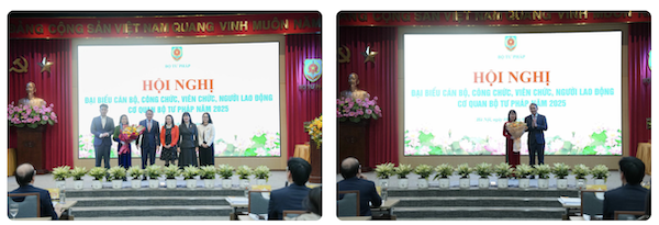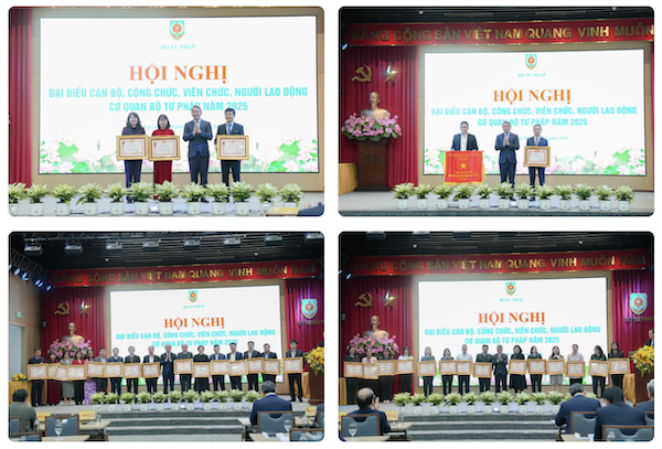 Hội nghị đã công bố và trao tặng Huân chương Lao động hạng Ba cho 1 tập thể, 2 cá nhân; danh hiệu Chiến sĩ thi đua toàn quốc cho Giám đốc Học viện Tư pháp Nguyễn Xuân Thu, Cờ thi đua của Chính phủ cho Vụ Hợp tác quốc tế; Bằng khen của Thủ tướng Chính phủ cho nhiều tập thể, cá nhân thuộc Bộ Tư pháp; đồng thời phát động phong trào thi đua năm 2026.