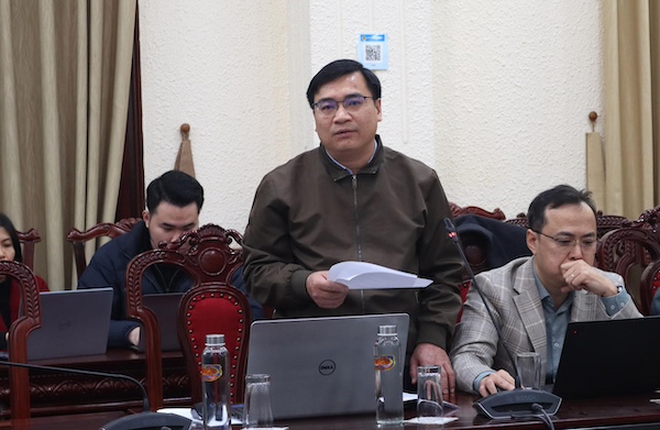 Phó Vụ trưởng Vụ Công tác xây dựng văn bản quy phạm pháp luật Lê Tuấn Phong báo cáo tại Phiên họp.