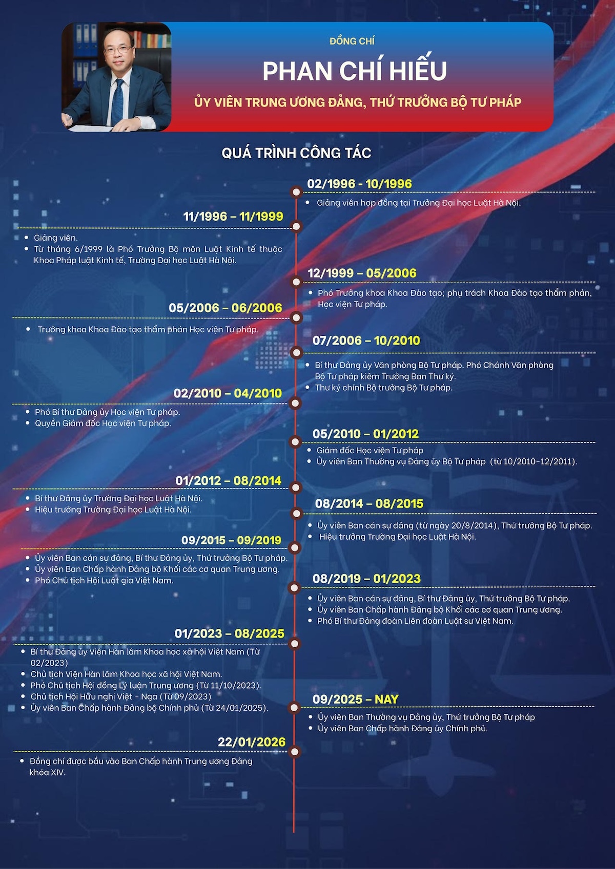 Quá trình công tác của Ủy viên Ban Chấp hành Trung ương Đảng, Thứ trưởng Bộ Tư pháp Phan Chí Hiếu