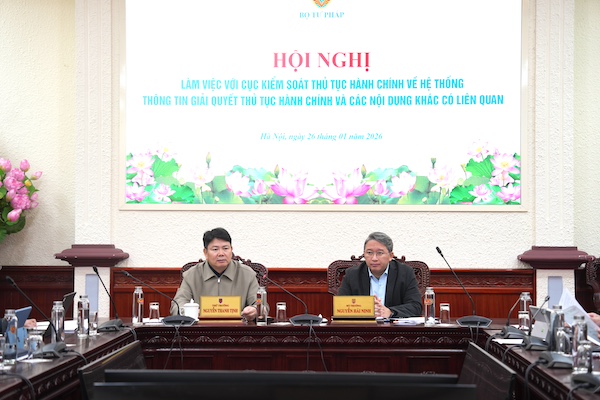 Ngày 26/1, Bộ trưởng Nguyễn Hải Ninh chủ trì Hội nghị làm việc đầu tiên với Cục Kiểm soát thủ tục hành chính (TTHC) sau khi tiếp nhận điều chuyển từ Văn phòng Chính phủ sang Bộ Tư pháp, về Hệ thống thông tin giải quyết TTHC và các nội dung khác có liên quan. Cùng dự có Thứ trưởng Nguyễn Thanh Tịnh.