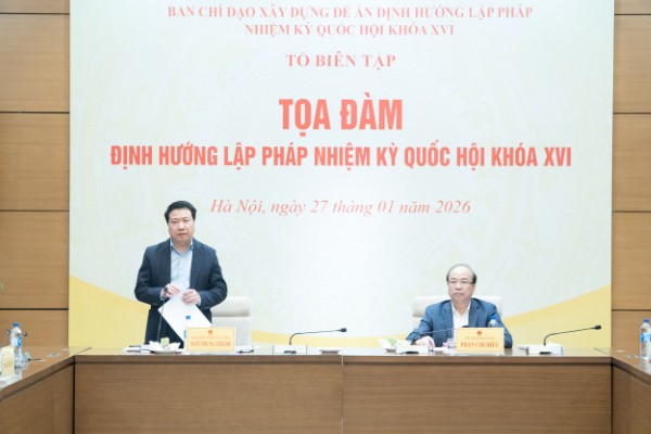 Ngày 27/1, tại Nhà Quốc hội, Phó Chủ nhiệm Ủy ban Pháp luật và Tư pháp của Quốc hội Ngô Trung Thành, thành viên Ban Chỉ đạo xây dựng Đề án định hướng lập pháp nhiệm kỳ Quốc hội khóa XVI, Tổ trưởng Tổ Biên tập đã chủ trì Tọa đàm định hướng lập pháp nhiệm kỳ Quốc hội khóa XVI. Ủy viên Trung ương Đảng, Thứ trưởng Bộ Tư pháp Phan Chí Hiếu đồng chủ trì Tọa đàm.