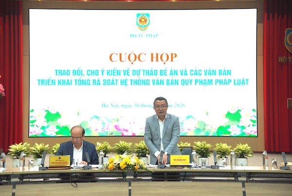 Ngày 30/1, Ủy viên Trung ương Đảng, Thứ trưởng Bộ Tư pháp Phan Chí Hiếu đã chủ trì cuộc họp trao đổi, cho ý kiến về dự thảo Đề án và các văn bản triển khai tổng rà soát hệ thống văn bản quy phạm pháp luật (VBQPPL). Ông Ngô Trung Thành, Phó Chủ nhiệm Ủy ban Pháp luật và Tư pháp của Quốc hội cùng dự.