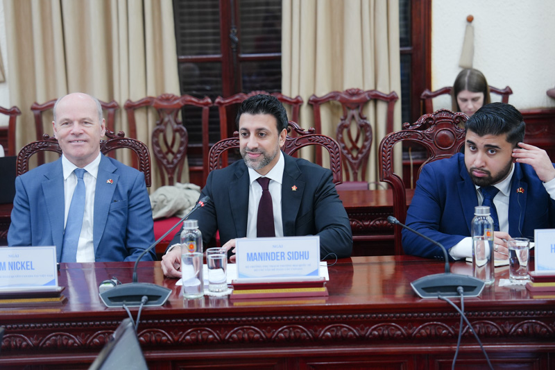 Sáng 12/02/2026, tại trụ sở Bộ Tư pháp, Bộ trưởng Tư pháp Việt Nam Nguyễn Hải Ninh đã tiếp Ngài Maninder Sidhu, Bộ trưởng phụ trách Thương mại Quốc tế, Bộ Các vấn đề toàn cầu Canada, nhân dịp Ngài Bộ trưởng thăm và làm việc tại Việt Nam.