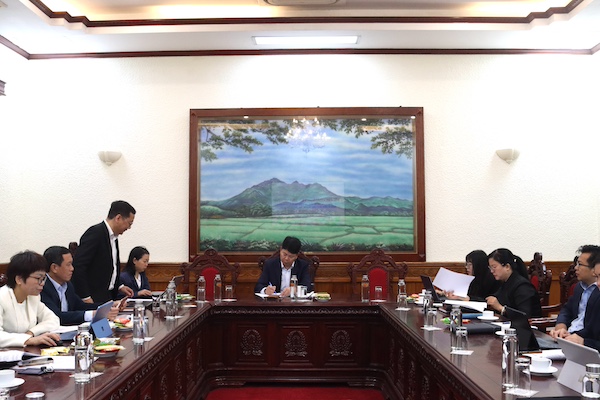 Thứ trưởng Nguyễn Thanh Tịnh nghe báo cáo về dự thảo. (Ảnh trong bài: PV)