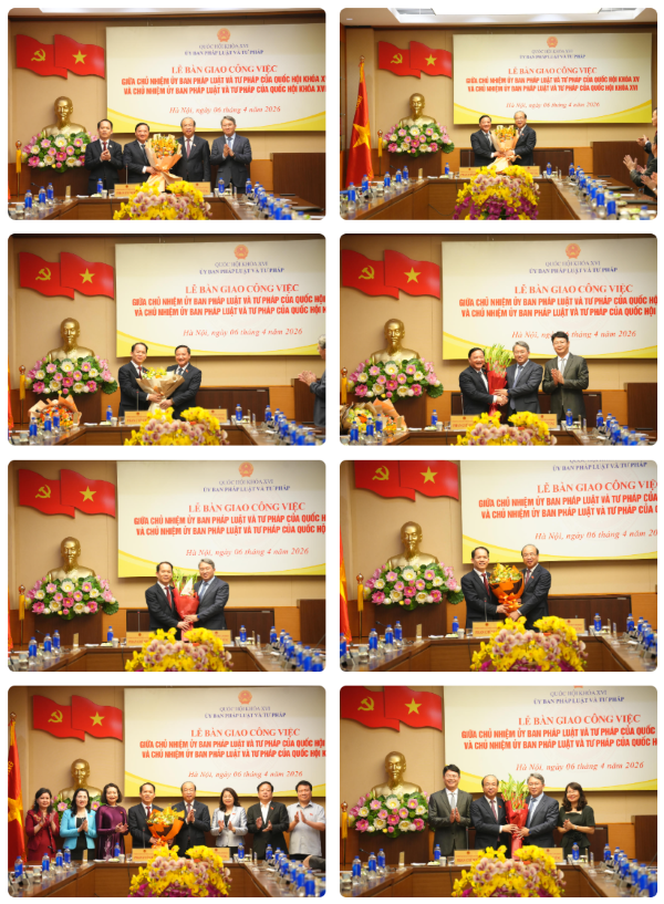 Chiều 6/4, tại Nhà Quốc hội đã diễn ra Lễ bàn giao công việc giữa Chủ nhiệm Ủy ban Pháp luật và Tư pháp của Quốc hội khóa XV Hoàng Thanh Tùng và Chủ nhiệm Ủy ban Pháp luật và Tư pháp của Quốc hội khóa XVI Phan Chí Hiếu. Phó Chủ tịch Quốc hội Nguyễn Khắc Định đã tham dự buổi Lễ.