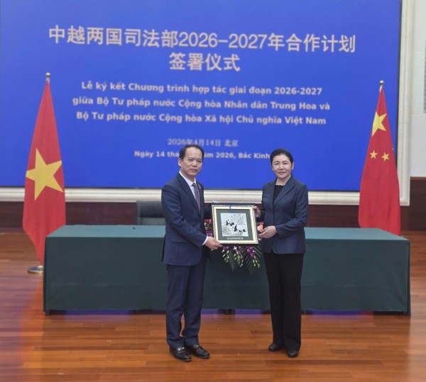 Trong khuôn khổ cuộc gặp, hai Bộ trưởng đã ký Chương trình hợp tác 2026-2027 giữa Bộ Tư pháp nước CHND Trung Hoa và Bộ Tư pháp nước CHXHCN Việt Nam triển khai Bản Ghi nhớ hợp tác giữa Bộ Tư pháp nước Cộng hòa Xã hội chủ nghĩa Việt Nam và Bộ Tư pháp nước Cộng hòa Nhân dân Trung Hoa ký tại Bắc Kinh, Trung Quốc ngày 31/10/2022. Đây là Chương trình hợp tác giai đoạn thứ hai, tiếp nối giai đoạn 2024-2025 đã thực hiện thành công giữa hai Bên. Văn kiện ký hôm nay sẽ vinh dự được trưng bày tại cuộc Hội đàm cấp cao giữa lãnh đạo của hai nước trong ngày mai tại Đại Lễ đường Nhân dân, Thủ đô Bắc Kinh, Trung Quốc. Với ý nghĩa đặc biệt này, hai Bộ trưởng đã cùng thống nhất việc chỉ đạo các đơn vị chuyên môn của hai Bộ tập trung thực hiện tốt việc triển khai thực hiện hai văn kiện có ý nghĩa chính trị quan trọng này.