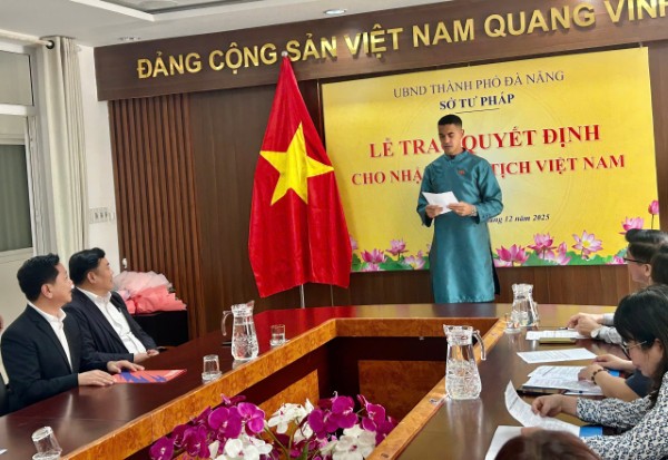 Thực hiện Quyết định số 2332/QĐ-CTN ngày 04/12/2025 của Chủ tịch nước Cộng hòa xã hội chủ nghĩa Việt Nam về việc cho nhập quốc tịch Việt Nam, ngày 11/12/2025, Sở Tư pháp thành phố Đà Nẵng đã tổ chức Lễ trao Quyết định của Chủ tịch nước Cộng hòa xã hội chủ nghĩa Việt Nam cho nhập quốc tịch Việt Nam đối với ông Sant Ana Santos Gustavo, quốc tịch Brazil, có tên gọi Việt Nam là Đỗ Phi Long.