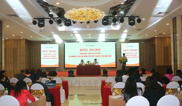 Quang cảnh Hội nghị tổng kết công tác tư pháp năm 2025, triển khai nhiệm vụ năm 2026.
