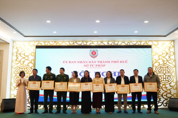 Tặng Bằng khen của Chủ tịch UBND thành phố Huế cho các cá nhân, tập thể có thành tích xuất sắc trong công tác thi hành Luật Trợ giúp pháp lý.