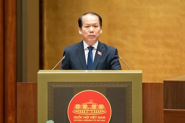 Chủ nhiệm Ủy ban Pháp luật và Tư pháp của Quốc hội Hoàng Thanh Tùng trình bày Báo cáo thẩm tra. (Ảnh: quochoi.vn).