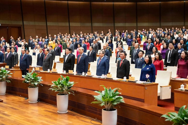 Tổng Bí thư Tô Lâm, Chủ tịch nước Lương Cường, Thủ tướng Phạm Minh Chính cùng các lãnh đạo, nguyên lãnh đạo Đảng, Nhà nước, Mặt trận Tổ quốc Việt Nam, 500 vị đại biểu vừa được cử tri tín nhiệm bầu làm đại biểu Quốc hội cùng các vị khách quý dự phiên khai mạc.