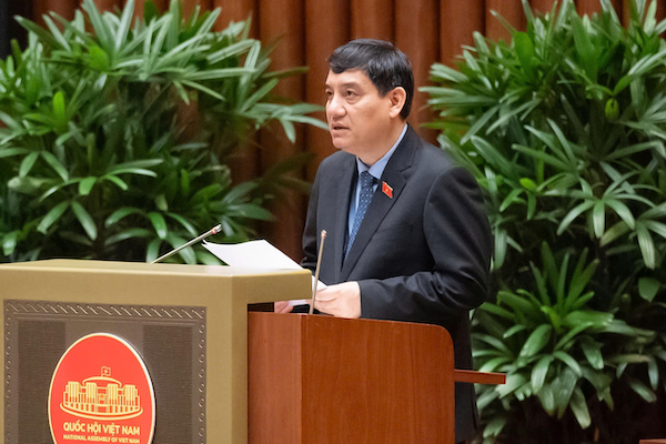 Chủ nhiệm Ủy ban Văn hóa và Xã hội Nguyễn Đắc Vinh trình bày báo cáo thẩm tra tại phiên họp.