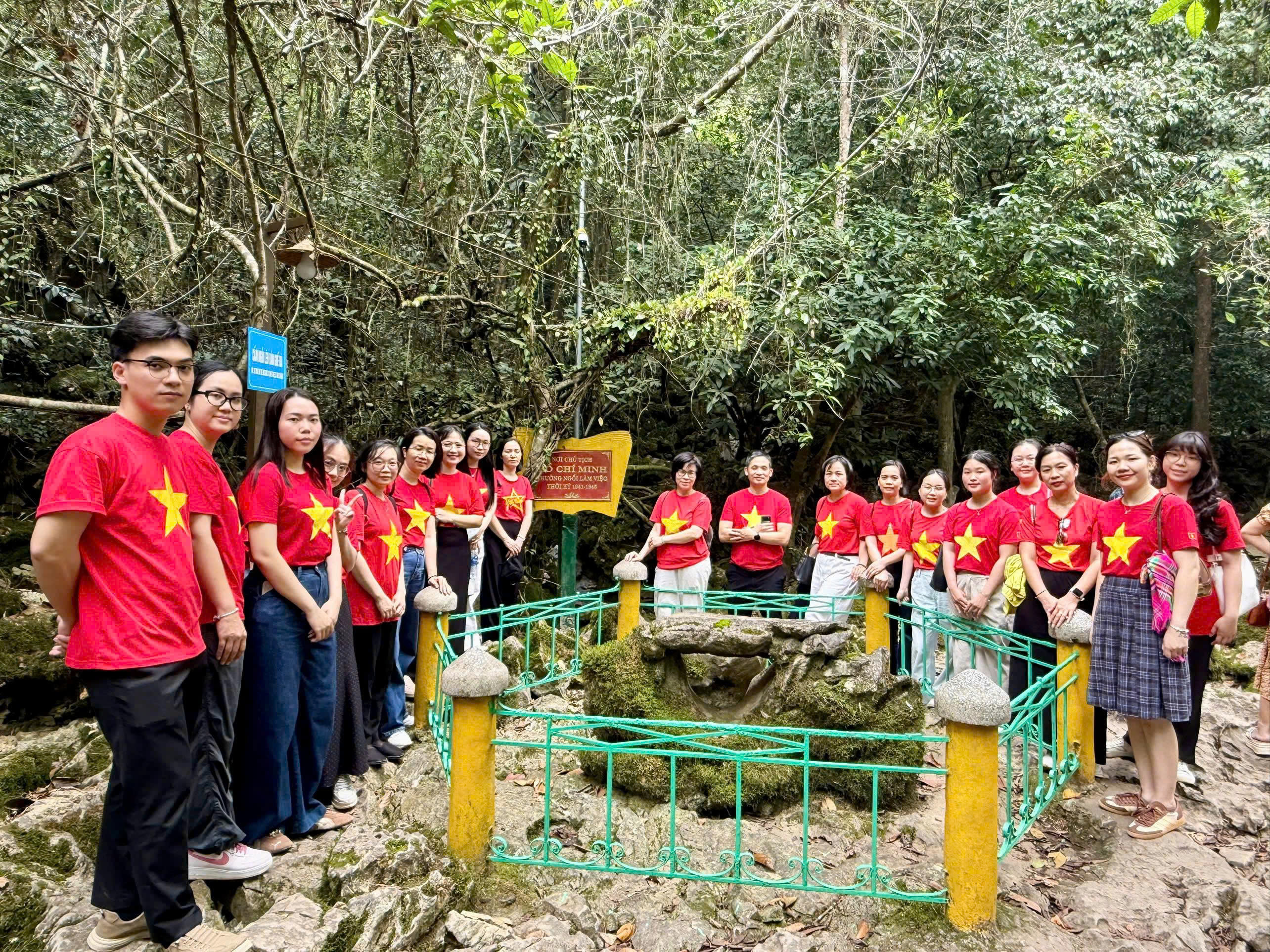 Chi bộ và Chi đoàn Cục PLQT&GQTCĐTQT khám phá vẻ đẹp kì vĩ của Động Ngườm Ngao