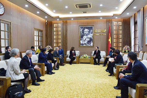 Welcoming Mrs Hilarie Bass’s visit to the Ministry of Justice, Vice Minister Tran Tien Dung was pleased to inform Mrs Hilarie Bass about the significant developments of legal profession in Vietnam with 12.600 lawyers and approximately 3700 legal-practicing organizations. Many foreign lawyers and foreign legal-practicing organizations operating in Vietnam have been supporting and contributing to Vietnamese legal agencies and Vietnamese lawyers. Vice Minister Tran Tien Dung expressed the interests of Vietnamese Government in general and of the Ministry of Justice in particular regarding the expertise development for lawyers through particular Programmes and Projects.