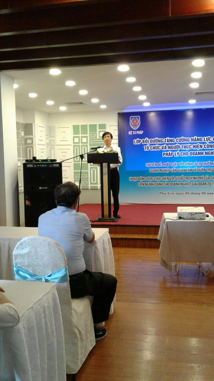 Ngày 60/8/2019 vừa qua, Câu lạc bộ pháp chế doanh nghiệp đã tổ chức lớp bồi dưỡng kiến thức pháp luật về chính sách thuế mới và các vấn đề doanh nghiệp cần quan tâm về quản trị doanh nghiệp tại tỉnh Phú Yên, với sự hỗ trợ kinh phí của Chương trình 585.