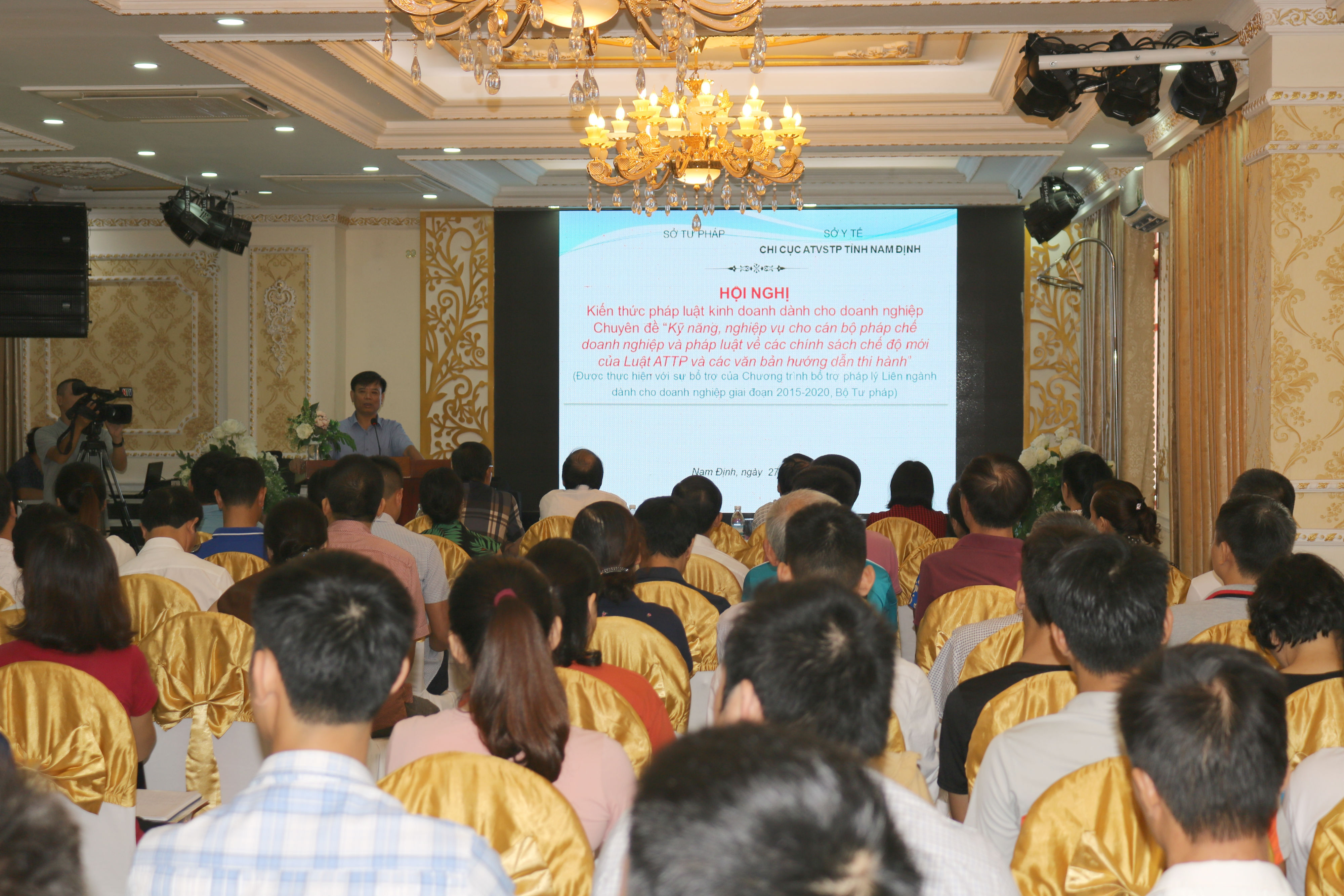 Ngày 27/8/2019 vừa qua, Sở Tư pháp Nam Định về tổ chức lớp bồi dưỡng kiến thức pháp luật cho lãnh đạo, cán bộ pháp chế doanh nghiệp chuyên đề “Kỹ năng, nghiệp vụ cho cán bộ pháp chế doanh nghiệp và pháp luật về các chính sách, chế độ mới của Luật An toàn, vệ sinh thực phẩm và các văn bản hướng dẫn thi hành”. Lớp bồi dưỡng được sự hỗ trợ kinh phí của Chương trình 585.