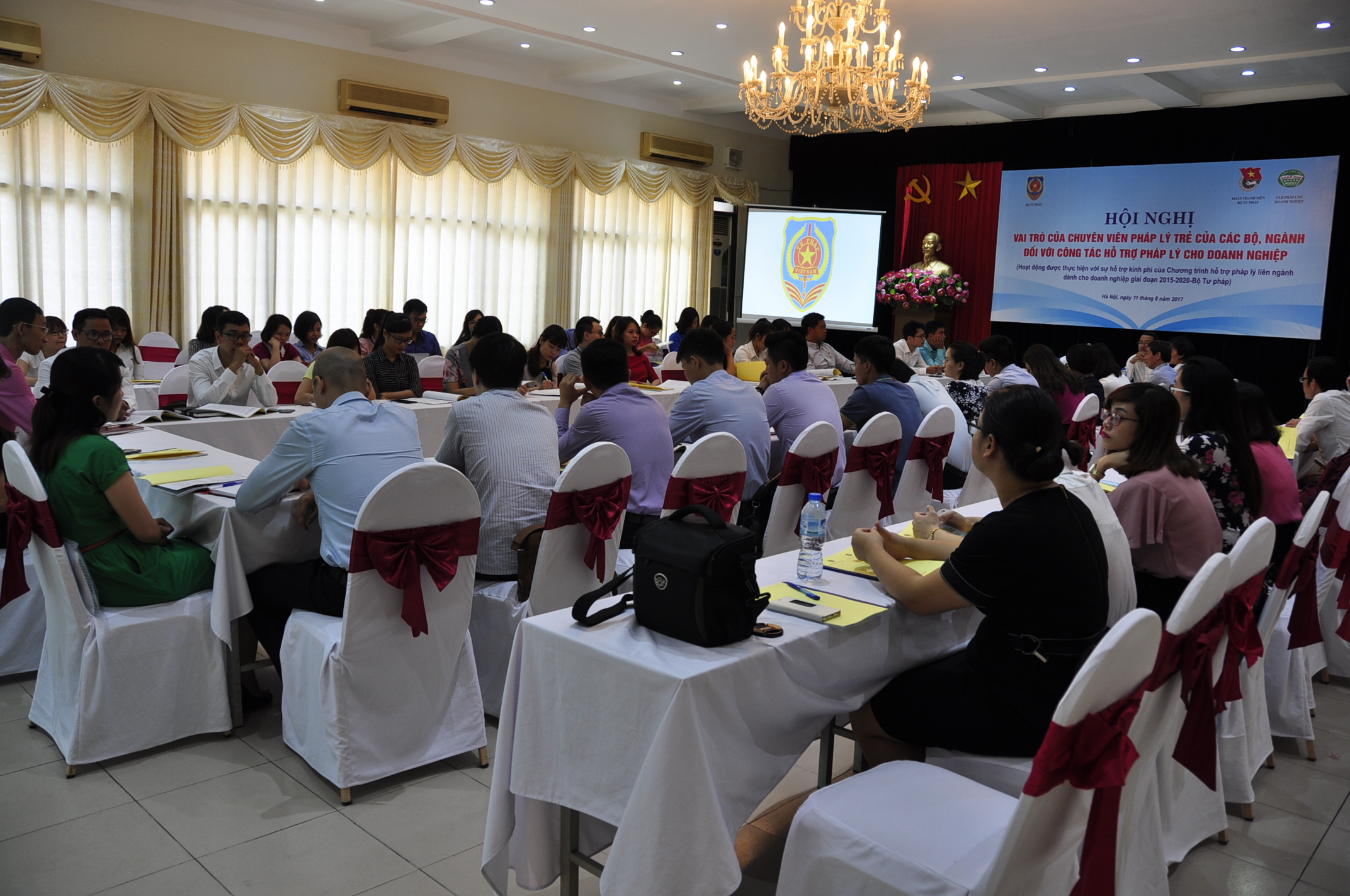 Trên cơ sở Quyết định số 1193/QĐ-585 ngày 28/7/2017 của Ban Quản lý chương trình hỗ trợ pháp lý liên ngành dành cho doanh nghiệp giai đoạn 2015-2020 về việc chọn Câu lạc bộ Pháp chế doanh nghiệp (phối hợp với Đoàn Thanh niên Bộ Tư pháp) tham gia thực hiện hoạt động tổ chức hội nghị đối thoại với doanh nghiệp về các vấn đề pháp lý liên quan đến hoạt động sản xuất, kinh doanh của doanh nghiệp; tổ chức các buổi giới thiệu chuyên đề, các hoạt động hỗ trợ doanh nghiệp nghiên cứu, nắm bắt các cam kết quốc tế và được sự đồng ý của Lãnh đạo Bộ Tư pháp, Đảng ủy Bộ Tư pháp, Câu lạc bộ Pháp chế doanh nghiệp phối hợp với Đoàn Thanh niên Bộ Tư pháp đã tổ chức Hội nghị đối thoại có tên gọi “Vai trò của chuyên viên pháp lý trẻ các Bộ ngành đối với công tác hỗ trợ pháp lý cho doanh nghiệp”. Hội nghị được tổ chức tại Hà Nội vào ngày 11 tháng 8 năm 2017.