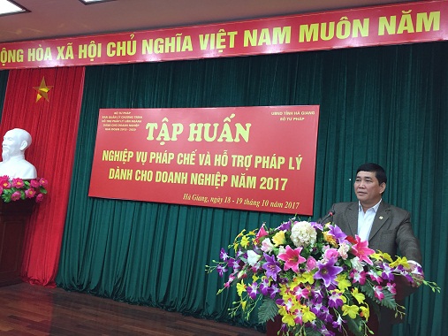 Được sự hỗ trợ của Chương trình hỗ trợ pháp lý liên ngành dành cho doanh nghiệp giai đoạn 2015-2020 (Chương trình 585), trong 03 ngày 18-19-20 tháng 10 năm 2017, tại tỉnh Hà Giang, Sở Tư pháp Hà Giang đã tổ chức các lớp bồi dưỡng cho doanh nghiệp trên địa bàn tỉnh với nhiều nội dung thiết thực, đáp ứng phần nào nhu cầu hỗ trợ pháp lý cho doanh nghiệp. Cụ thể: