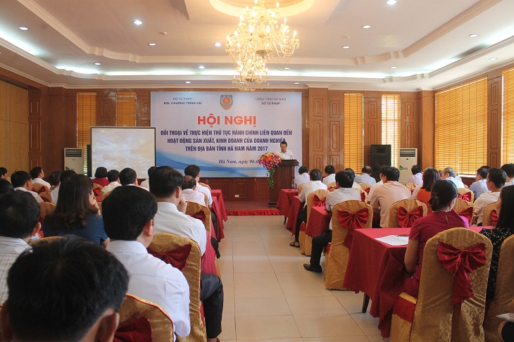 Thực hiện Quyết định số 2319/QĐ-TTg ngày 28 tháng 11 năm 2014 của Thủ tướng Chính phủ về việc tiếp tục thực hiện và điều chỉnh nội dung các dự án của Chương trình hỗ trợ pháp lý liên ngành dành cho doanh nghiệp giai đoạn 2010-2014; Theo Quyết định số 1189/QĐ-585 ngày 28/7/2017 của Ban quản lý Chương trình hỗ trợ pháp lý liên ngành dành cho doanh nghiệp giai đoạn 2015 - 2020, ngày 6 tháng 9 năm 2017, Sở Tư pháp Hà Nam tổ chức hội nghị đối thoại về thực hiện thủ tục hành chính liên quan đến hoạt động sản xuất, kinh doanh trên địa bàn tỉnh Hà Nam.