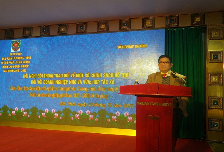 Thực hiện Kế hoạch hoạt động năm 2017 của Ban Quản lý Chương trình hỗ trợ pháp lý liên ngành dành cho doanh nghiệp giai đoạn năm 2015-2020, Bộ Tư pháp (sau đây viết tắt là Chương trình 585), ngày 18/12/2017 vừa qua, Sở Tư pháp Hà Tĩnh đã tổ chức 01 Hội nghị đối thoại với doanh nghiệp tại Hà Tĩnh và thu hút sự tham dự đông đảo của các cơ quan quản lý nhà nước, các doanh nghiệp trên địa bàn tỉnh Hà Tĩnh.