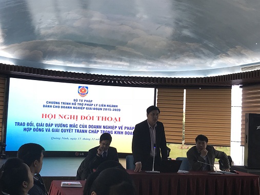 Thực hiện Kế hoạch hoạt động năm 2017 của Ban Quản lý Chương trình hỗ trợ pháp lý liên ngành dành cho doanh nghiệp giai đoạn năm 2015-2020, Bộ Tư pháp (sau đây viết tắt là Chương trình 585), trong 02 ngày 15 và 16/12/2017 vừa qua, Ban Quản lý Chương trình 585 đã tổ chức Tọa đàm và lớp bồi dưỡng kiến thức pháp luật kinh doanh tại tỉnh Quảng Ninh và thu hút sự tham dự đông đảo của các cơ quan quản lý nhà nước, các doanh nghiệp trên địa bàn tỉnh.