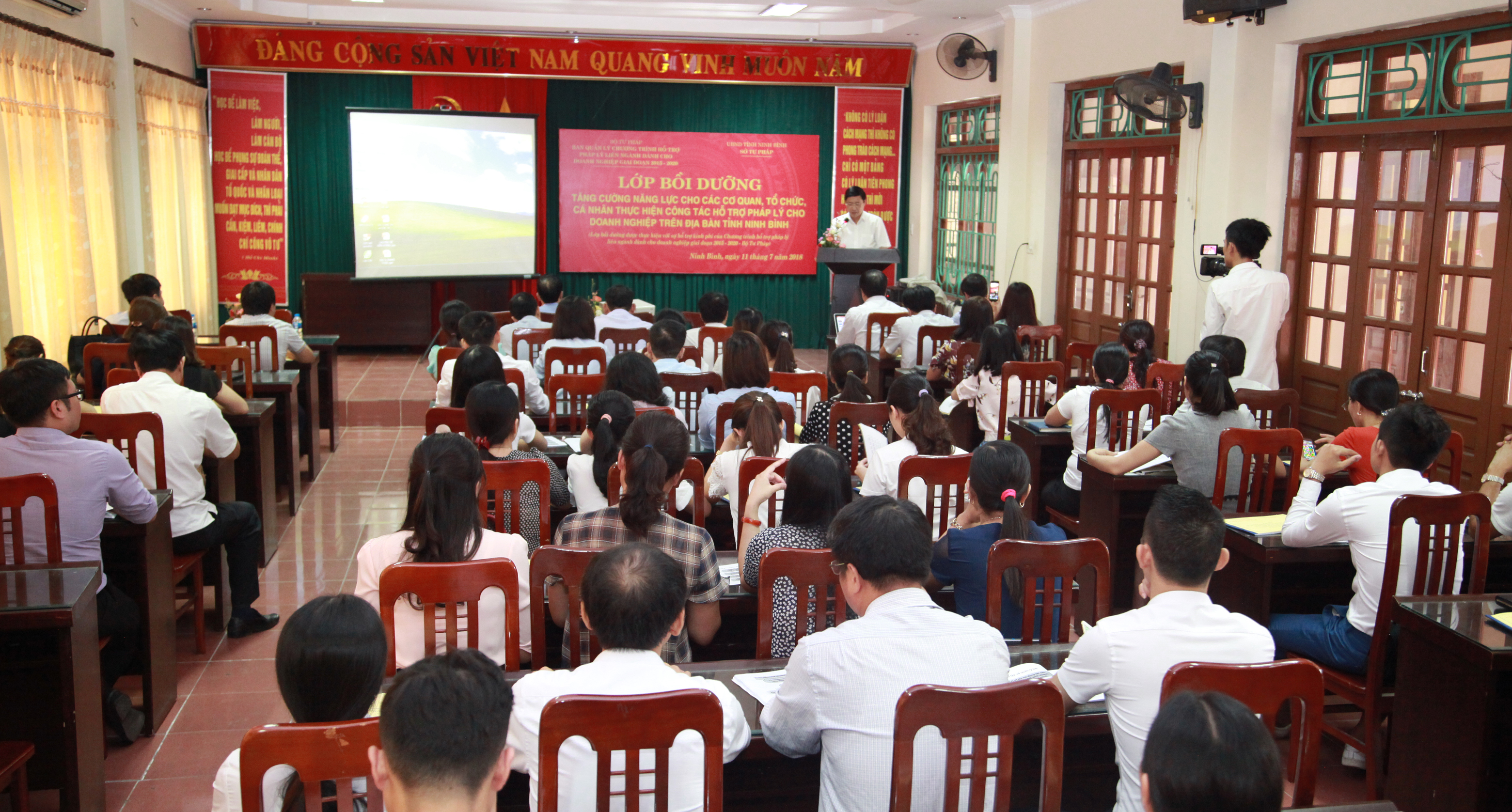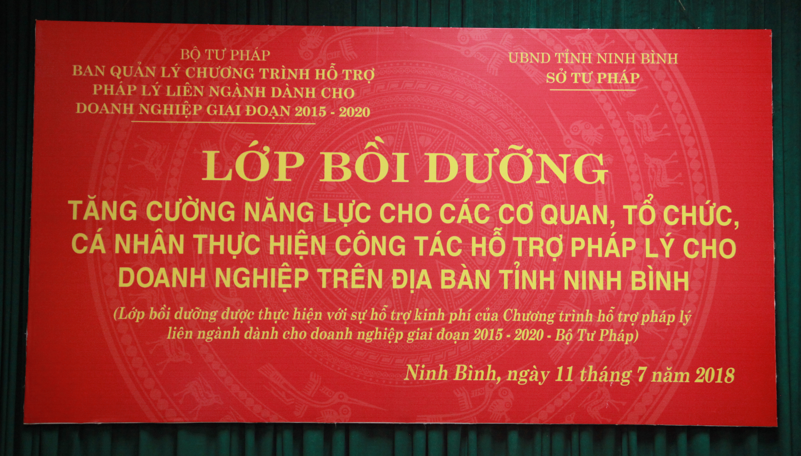 Trên cơ sở các hoạt động được Ban Quản lý Chương trình 585 giao, ngày 11/7/2018, Sở Tư pháp tỉnh Ninh Bình đã tổ chức lớp bồi dưỡng tăng cường năng lực cho cơ quan, tổ chức, cán bộ làm công tác hỗ trợ pháp lý cho doanh nghiệp trên địa bàn tỉnh. Kinh phí tổ chức lớp bồi dưỡng do Chương trình 585 hỗ trợ.