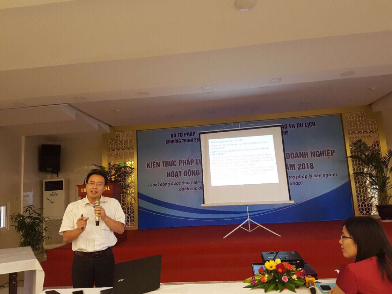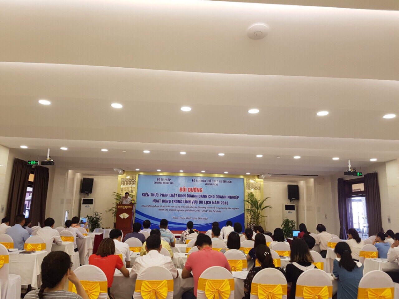 Thực hiện Quyết định số 1217/QĐ-585 ngày 31/5/2018 của Ban quản lý Chương trình hỗ trợ pháp lý liên ngành dành cho doanh nghiệp giai đoạn 2015-2020 về việc chọn Văn phòng Bộ Văn hóa, Thể thao và Du lịch (phối hợp với Vụ Pháp, Bộ Văn hóa, Thể thao và Du lịch) tham gia thực hiện hoạt động bồi dưỡng kiến thức pháp luật kinh doanh dành cho doanh nghiệp năm 2018 và Hợp đồng số 45/BTP-585 ngày 31/5/2018 giữa Ban quản lý Chương trình hỗ trợ pháp lý liên ngành dành cho doanh nghiệp giai đoạn 2015-2020 và Văn phòng Bộ Văn hóa, Thể thao và Du lịch (phối hợp Vụ Pháp chế, Bộ Văn hóa, Thể thao và Du lịch), Bộ Văn hóa, Thể thao và Du lịch đã tổ chức lớp bồi dưỡng kiến thức pháp luật kinh doanh dành cho doanh nghiệp hoạt động trong lĩnh vực du lịch.