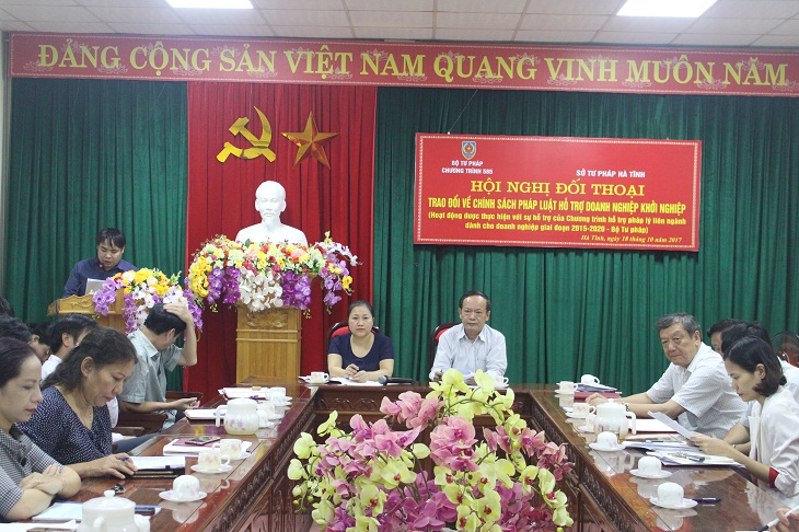 Trên cơ sở Kế hoạch thực hiện các hoạt động năm 2017 của Chương trình hỗ trợ pháp lý liên ngành dành cho doanh nghiệp giai đoạn 2015-2020 (viết tắt là Chương trình 585) và được sự hỗ trợ kinh phí của Chương trình, ngày 18/10/2017 Sở Tư pháp Hà Tĩnh đã tổ chức Hội nghị đối thoại với doanh nghiệp trao đổi về chính sách pháp luật hỗ trợ doanh nghiệp khởi nghiệp.
